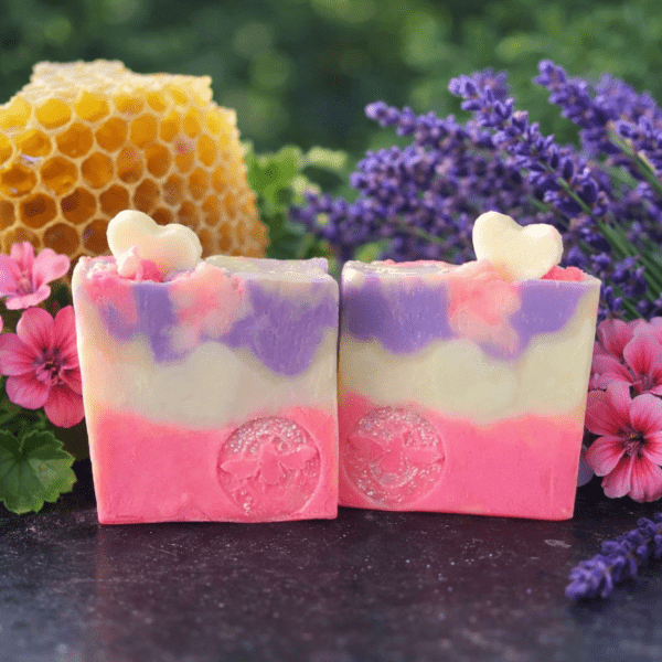 Beeswax brings a soft, cushiony foam—like a little hug from the hive—while lavender whispers calm and geranium adds a rosy, joyful lift. The scent is light, floral, and beautifully balanced, perfect for everyday moments that deserve a touch of magic.