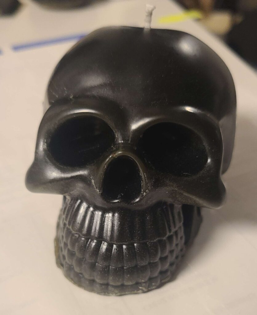A black skull candle represents banishing, protection, and spiritual transformation, symbolizing the removal of negative energy, breaking ties with harmful influences, or clearing mental blocks. It combines the power of the skull to symbolize the mind and spirit with the protective and absorptive qualities of the black color to protect one’s space and energy. It is used in rituals for setting boundaries, cleansing home and self, and empowering one to face challenges and achieve personal transformation.