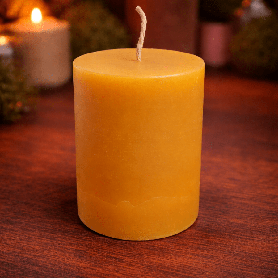 Our Beeswax Candles are handcrafted here in our apiary made with care, bringing you beeswax’s pure, natural color. We use only clean, lightly filtered, 100% pure beeswax from beeswax capping’s in our beeswax candles and soaps. The beeswax color is determined by the remaining pollen and propolis in the wax; this color varies a little between each batch.