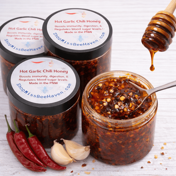 Crafted for chefs and discerning palates, our Hot Garlic Chili Honey is a refined fusion of raw, unfiltered honey, slow-infused chili peppers, and savory garlic. This small-batch creation delivers layered flavor—beginning with deep, natural sweetness, unfolding into gentle heat, and finishing with a warm, savory depth that lingers beautifully on the palate.