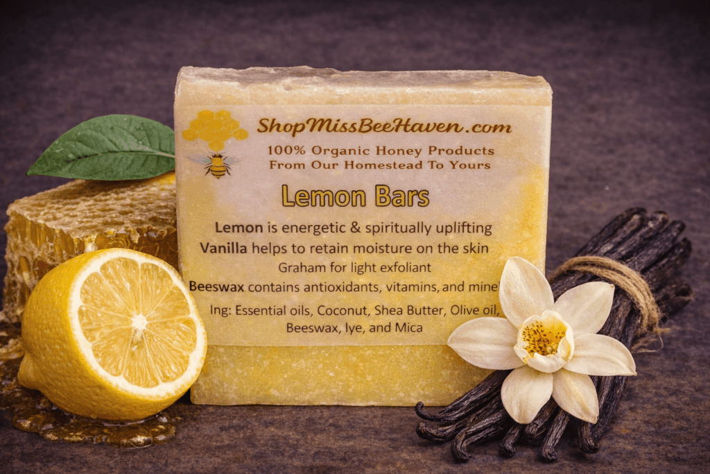 Bright, cheerful, and irresistibly fresh, Lemon Bars Beeswax Soap is a handcrafted cold-process bar that awakens the senses while gently caring for your skin. Zesty lemon brings an energizing, uplifting aroma, perfectly balanced by smooth vanilla for a soft, comforting finish.
