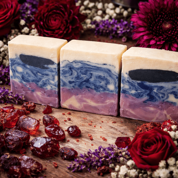Scented with rich Dragon’s Blood essential oil, this bar offers a warm blend of resin, subtle spice, and soft floral notes—mysterious yet comforting. The aroma is deep and lingering without being overpowering, making it perfect for those who love a darker, more sensual scent profile.