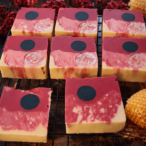 This unique soap is made with Dragons Blood oil, it has a warm, earthy, and spicy aroma, with notes of dark wood, musk, and a hint of floral and sweet vanilla. This CP soap helps rehydrate skin. Provides protection against negative energy, enhances the potency of spells and rituals, cleanses spaces and auras of negativity, and promotes inner healing and emotional balance.