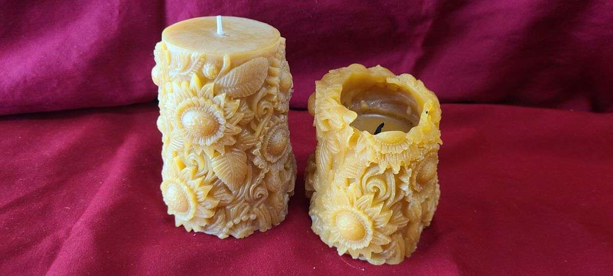 Our Beeswax Candles are handcrafted here in our apiary made with care, bringing you beeswax’s pure, natural color. We use only clean, lightly filtered, 100% pure beeswax from beeswax capping’s in our beeswax candles and soaps. The beeswax color is determined by the remaining pollen and propolis in the wax; this color varies a little between each batch.