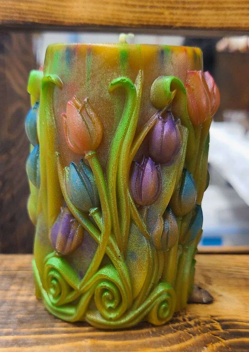 Our Beeswax Candles are handcrafted here in our apiary made with care, bringing you beeswax’s pure, natural color. We use only clean, lightly filtered, 100% pure beeswax from beeswax capping’s in our beeswax candles and soaps. The beeswax color is determined by the remaining pollen and propolis in the wax; this color varies a little between each batch.